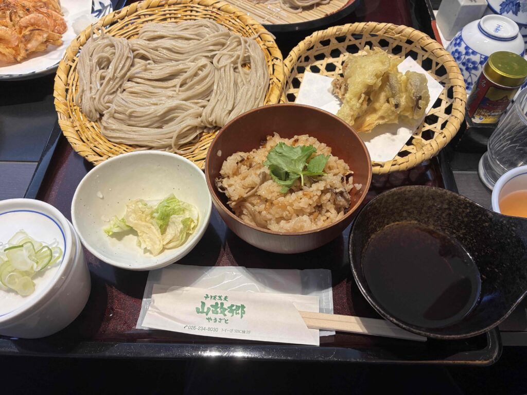 昼ご飯は戸隠蕎麦やまざとへ。戸隠蕎麦は香りが強くて、喉越しもよくて、細めで食べやすい。歴史が長くて、日本三大蕎麦と言われているらしいけど、そんな肩書きがどうでも良くなるくらい普通においしい。